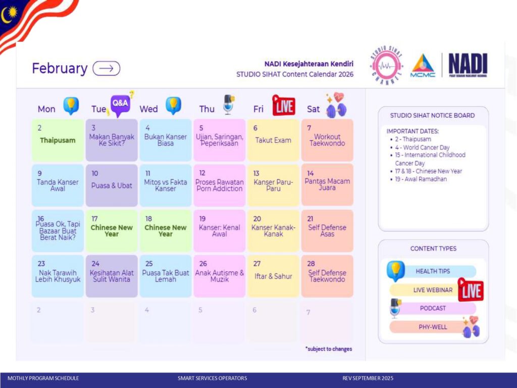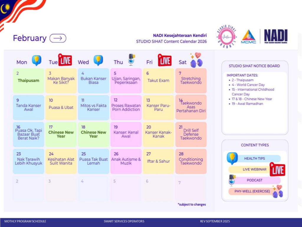 JADUAL AKTIVITI NADI KESEJAHTERAAN KENDIRI – FEBRUARI 2026