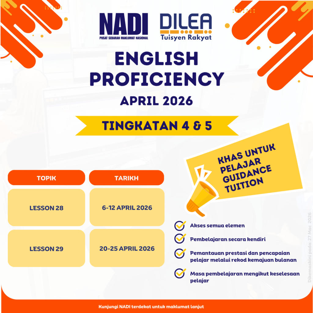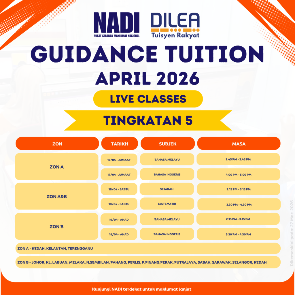 JADUAL NADI DILEA TUISYEN RAKYAT BULAN APRIL 2026