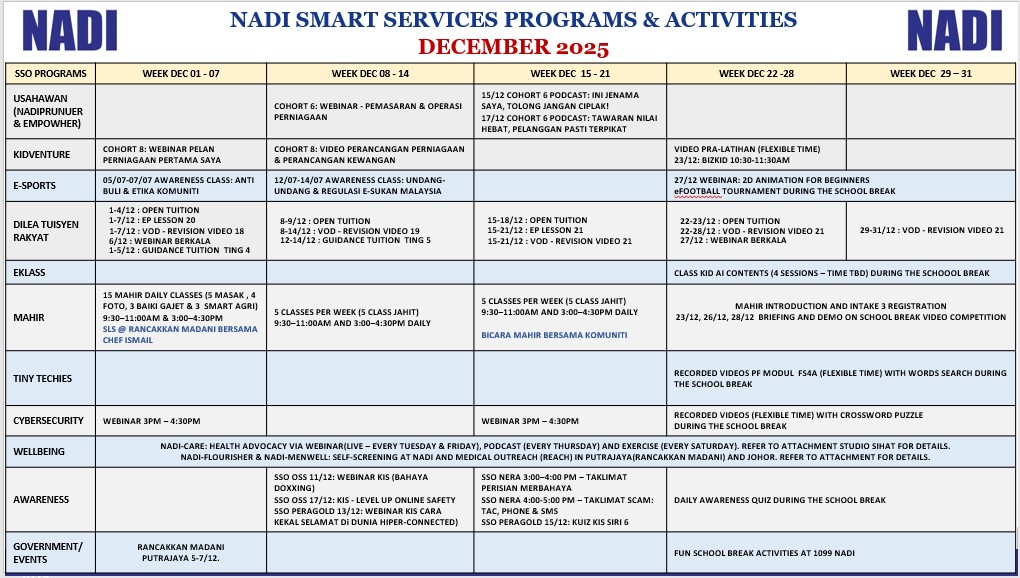 TAKWIM NADI SMART SERVICES DISEMBER 2025